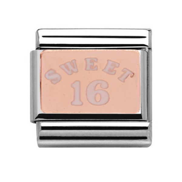 Sweet Sixteen charm, with a Rose Gold on Silver Colour. Celebrate this special moment with this perfect gift or great addition to any Charmlink bracelet.