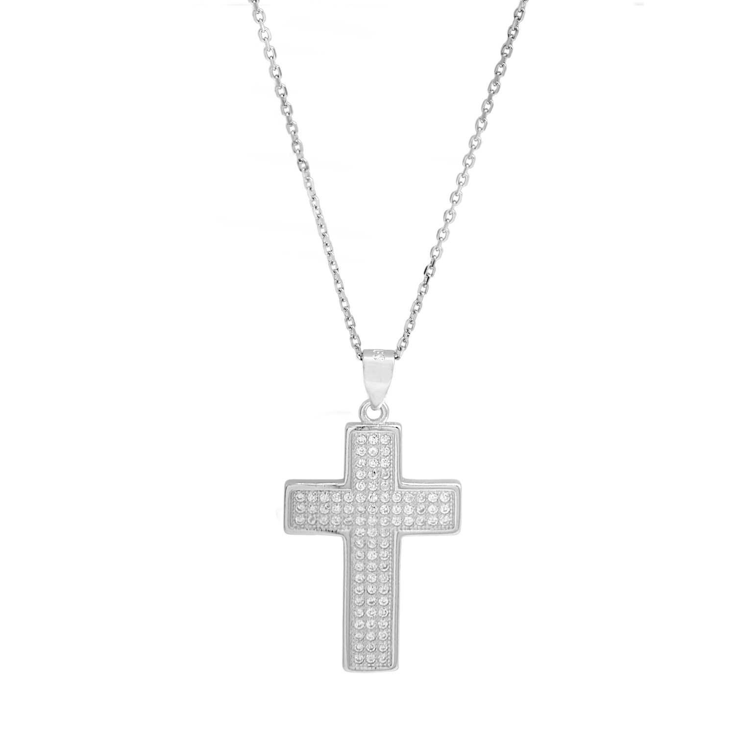 Make a statement of faith and fashion with our Sterling Silver pave cross necklace. Featuring a Sterling Silver pave design, this necklace adds a touch of glamour to any outfit. Crafted from premium Sterling Silver, it’s both durable and stylish, making it perfect for everyday wear or special occasions. Whether you wear it as a symbol of faith or as a chic accessory, this necklace is sure to turn heads wherever you go.