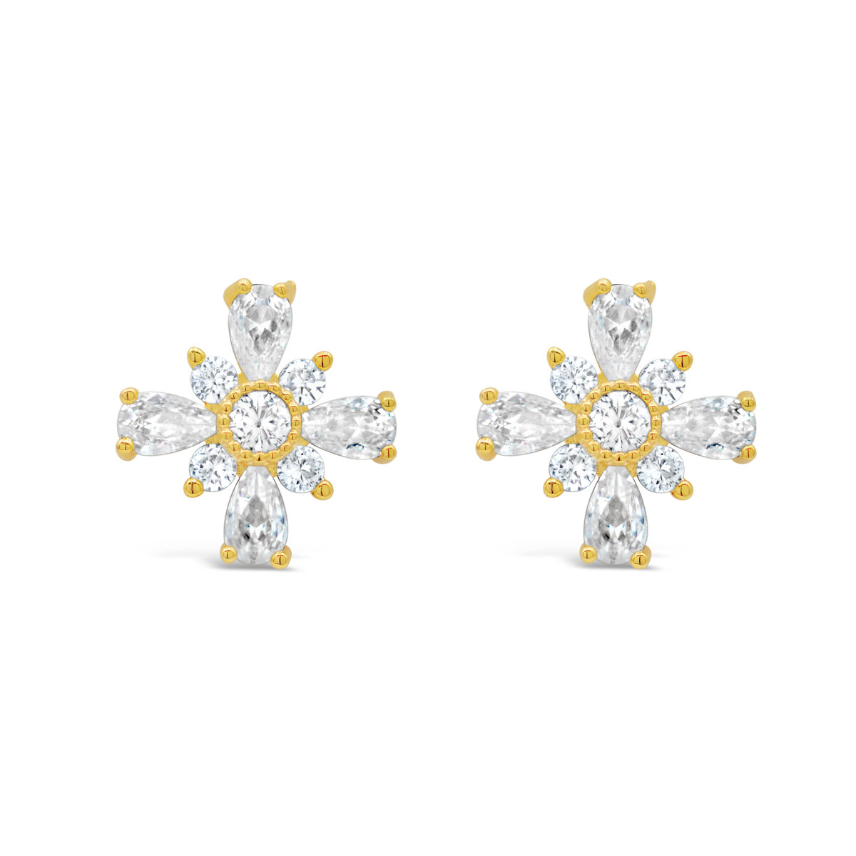 Matisse Yellow Gold & CZ Templar Style Cross Earrings